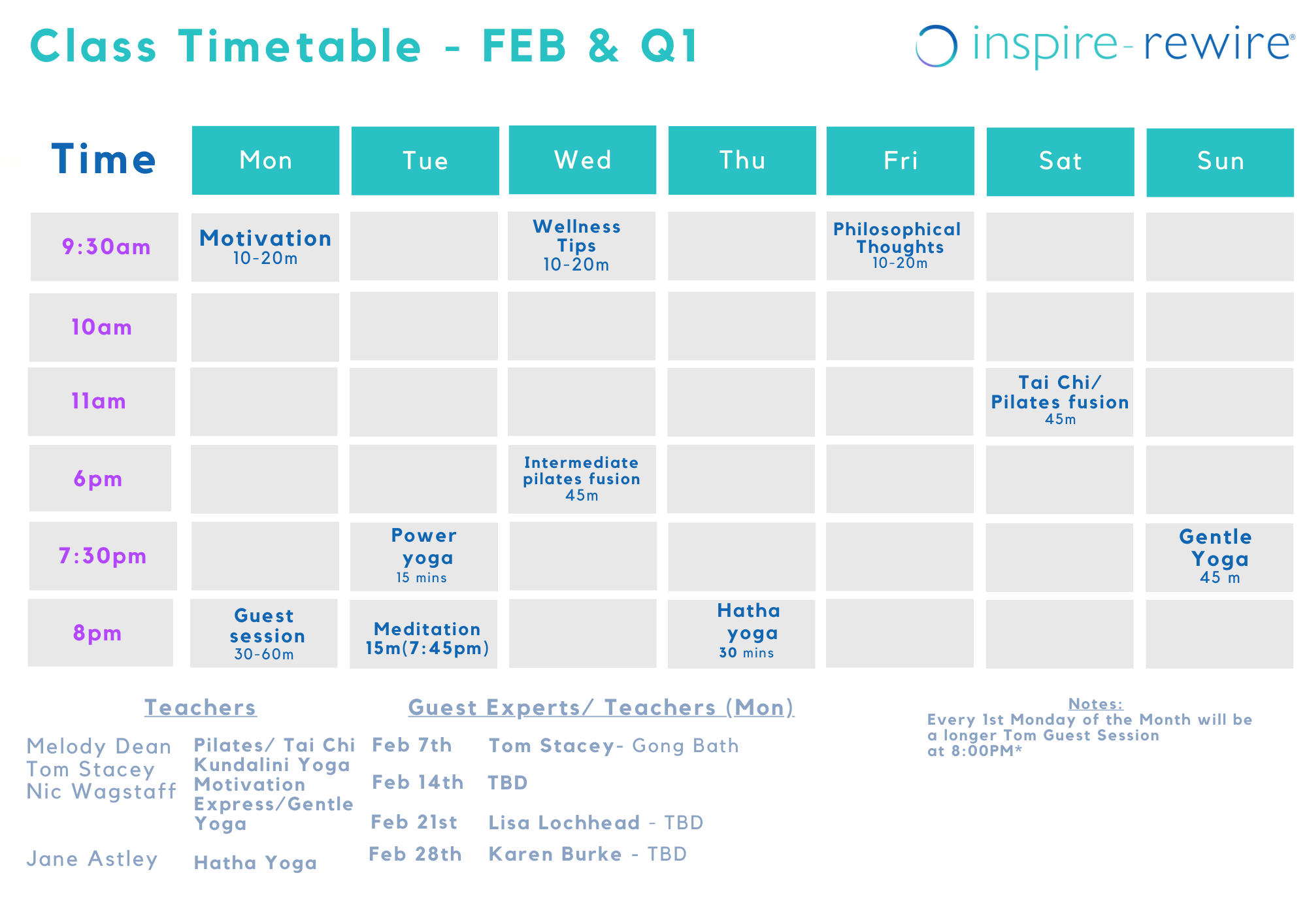 Weekly evening classes will be Yoga, Tai-chi, Pilates or meditation, as well as showcasing a guest teacher and something a little different like belly dance, all available on replay for the whole week to attend live or at your leisure. These will all be accessible on a clear and easy hub without having to log onto zoom or similar or facbeook if you prefer.