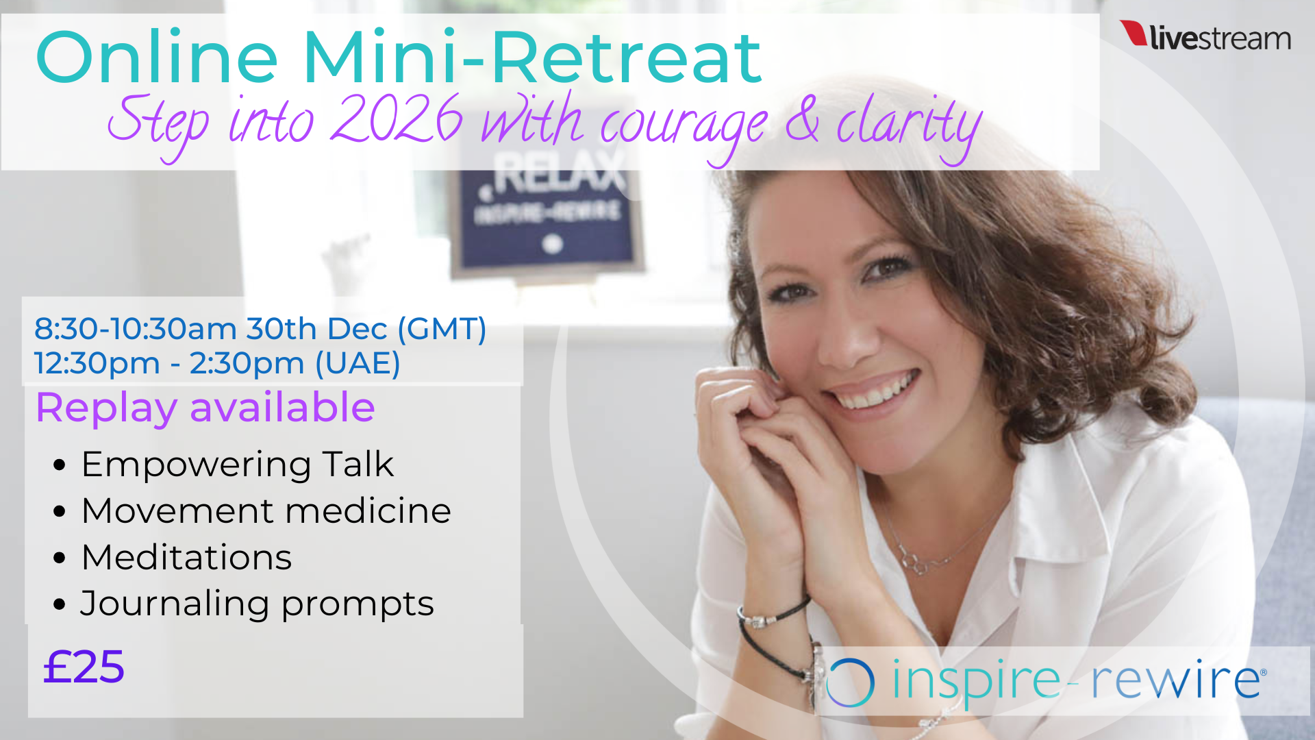 On this special annual mini retreat we will be together and supporting each other through self reflection and guided journaling/meditation on what came out of 2025. And setting an empowering tone for 2026 of what we want to aim for.